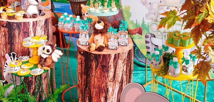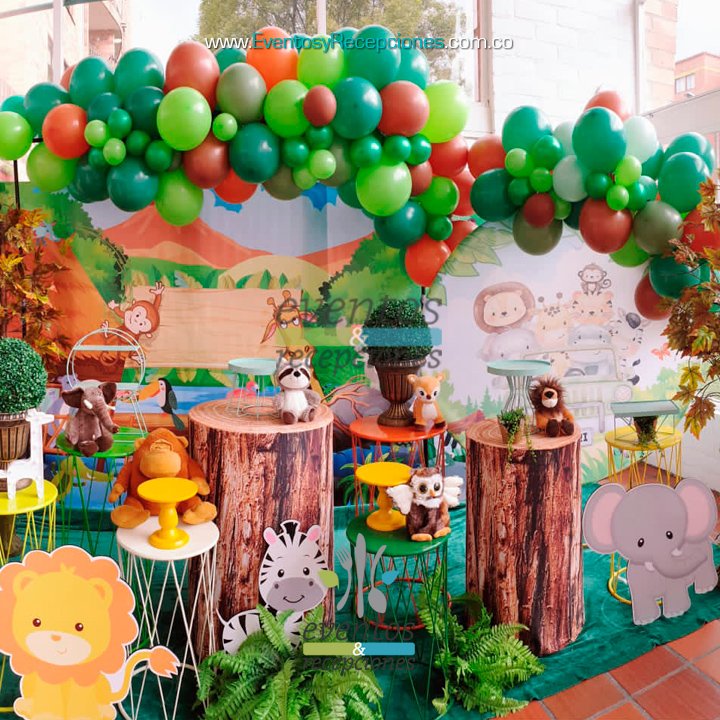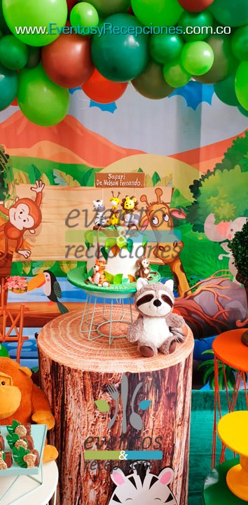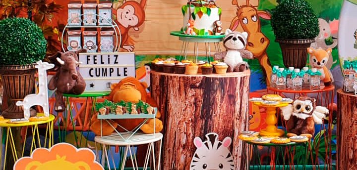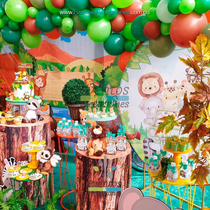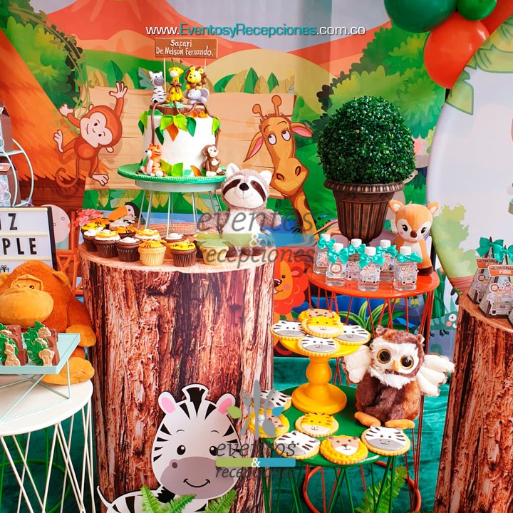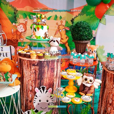 Temática Infantil Safari - Selva animales - Mesa Stand de Postres